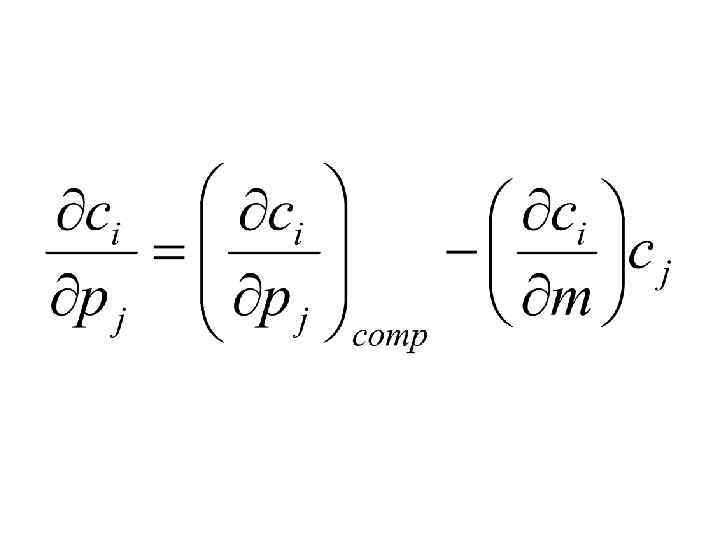 Типы товаров • Товар вида j называется нормальным, если • Товаром Гиффина, если Среди покупателей с низким уровнем дохода рост цен на малоценные товары (картофель, хлеб) может вызвать повышение спроса на эти товары за счет отказа от покупок более ценных • Ценным, если • Малоценным, если • Два товара I и j называются взаимозаменяемыми (например животное и растительное масло), если
