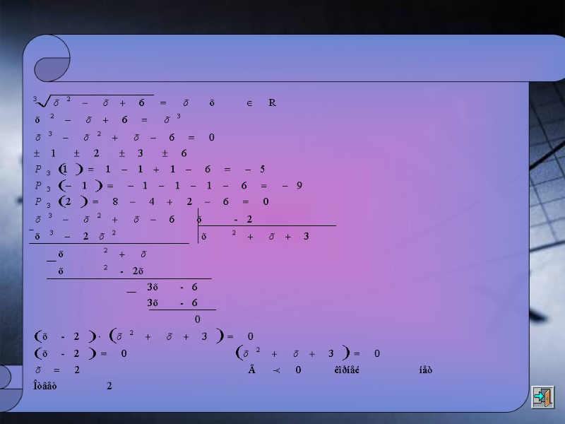 Иррациональные уравнения Уравнение, содержащее неизвестное под знаком корня, называется иррациональным уравнением. Решение уравнений, содержащих неизвестное под знаком корня, основано на следующих основных теоремах: f(x)=g(x) f 2(x)= g 2 (x) f(x)=g(x) g(x) 0 f(x)=g(x) f 3(x)= g 3 (x) X R f (x)= g 2(x) g(x) 0 Если уравнение без нахождения ООУ Необходима проверка!