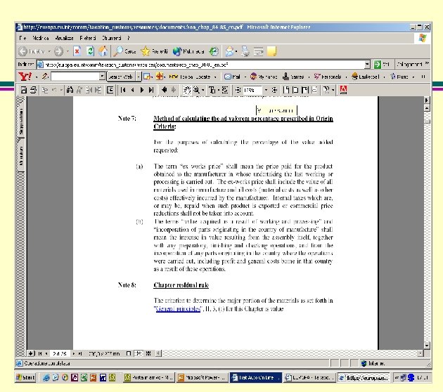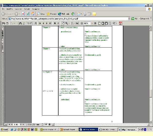 REGOLE ORIGINE NON PREFERENZIALE COD Art. 24: Paese di ultima lavorazione o trasformazione sostanziale § economicamente giustificata § effettuata in un’impresa attrezzata a questo scopo § e che abbia dato origine ad un prodotto nuovo o che rappresenta una fase importante della fabbricazione DAC Prodotti coperti da disposizioni particolari: q. Prodotti tessili: allegato 10, e q. Pochi prodotti non tessili: allegato 11 q Altri prodotti: lista della posizione negoziale comunitaria ai negoziati in corso presso OMD q. Regola residuale: all’inizio di ogni capitolo Sito Internet della D. G. TAXUD http: //europa. eu. int/comm/taxation_customs/customs_duties/ rules_origin/nonpreferential/article_410_en. htm