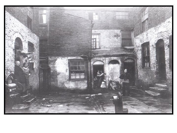 Source C ‘We saw drains and sewers emptying into a stream. Also in this stream had been thrown dead dogs and cats and other offensive articles. Downstream women filled buckets to use as drinking water, for cooking, washing and cleaning their clothes’ Source D ‘Few back streets are paved at all. Dungheaps are found in several parts of the streets, and sewage is seen running down the gutter in the middle of the street. ’ Source E ‘The homes of 3000 families were visited. In 773 of them the families slept 3 and 4 to a bed, in 209 families 4 and 5 slept in a bed and in 15 families 6 and 7 slept in a bed. In one cellar we found a mother and her two grown up daughters sleeping on a bed of straw in one corner and 3 sailors slept in the other corner’