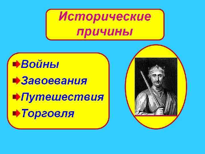 Заимствования из • • Греческого: грамматика, география, история, тетрадь Французского: пальто, бульон, актёр, жилет Немецкого: лагерь, курорт, ландшафт, мольберт Латинского: школа, каникулы, директор, диктант, экзамен Итальянского: балерина, ария, аккорд, солист, студия Тюркского: богатырь, шатёр, жемчуг, телега, боярин Испанского: гитара, парад, коррида, серенада Английского: бизнес, баскетбол, спорт, троллейбус