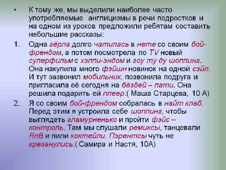 Задание к тексту: • Найдите в тексте заимствованные слова. Пользуясь словарём, определите их значение. • Запишите слова вместе с определениями.