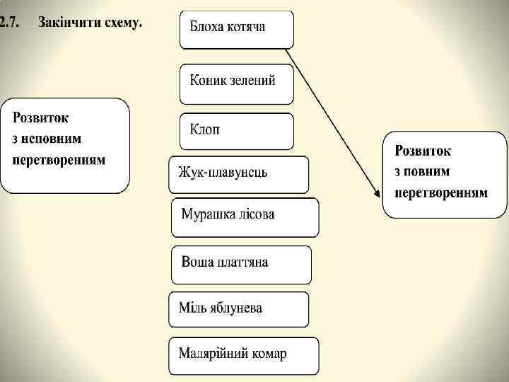 «Установи відповідність» 1 2 3 4 5 жук колорадський коник зелений блоха собача комар-пискун клоп італійський