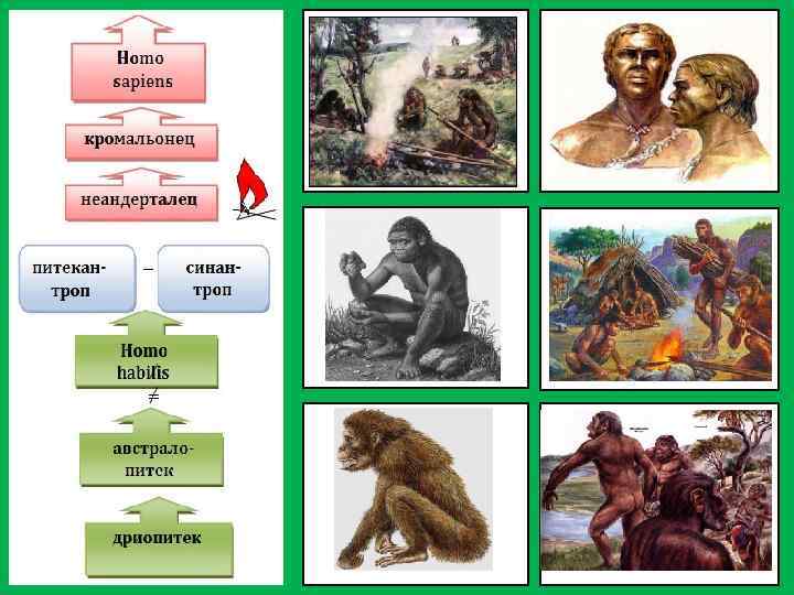 Хотя питекантропы и синантропы не умели добывать огонь, но они уже не боялись его и использовали в своих целях. Следующая стадия развития человека получила имя неандерталец, по названию долины Неандерталь (Германия), где впервые были обнаружены останки человека такого типа. Резкие изменения произошли с человеком после того, как он овладел огнём. Изменилась кисть руки человека, значительно развился ум, появилась раздельная речь. Человек стал использовать огонь не только для обогрева и отпугивания хищников, но и для приготовления пищи. Все эти изменения свидетельствовали о том, что появился новый тип человека – Человек разумный. Первых представителей «человека разумного» называли кроманьонцами, по названию пещеры во Франции, где впервые были обнаружены останки «человека разумного» .