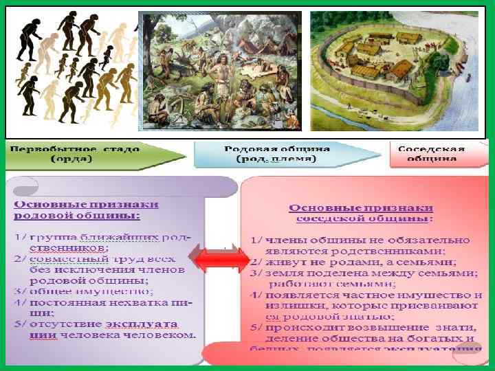 Постепенно родовые общины разрастались и превращались в род. При этом большие роды делились на родовые общины. Близкие по крови и происхождению роды объединялись для защиты своей территории в племена. Жизнь племени была значительно более сложной и потому возникла необходимость в создании механизма управления. К тому же развитие орудий труда привело к повышению производительности труда. Отдельная семья уже могла прокормить себя. Это привело к появлению соседской общины.