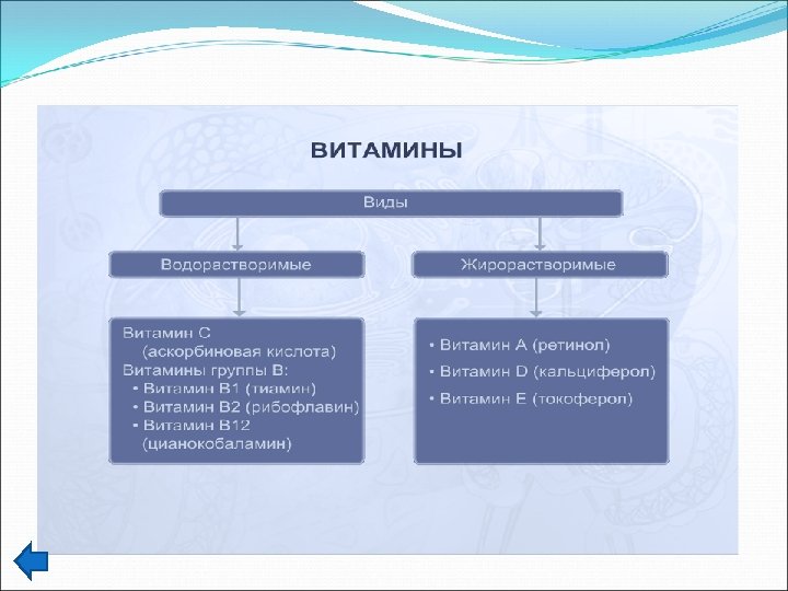 Витамины – биологически активные вещества, синтезирующиеся в организме или поступающие с пищей, которые в малых количествах необходимы для нормального обмена веществ и жизнедеятельности организма