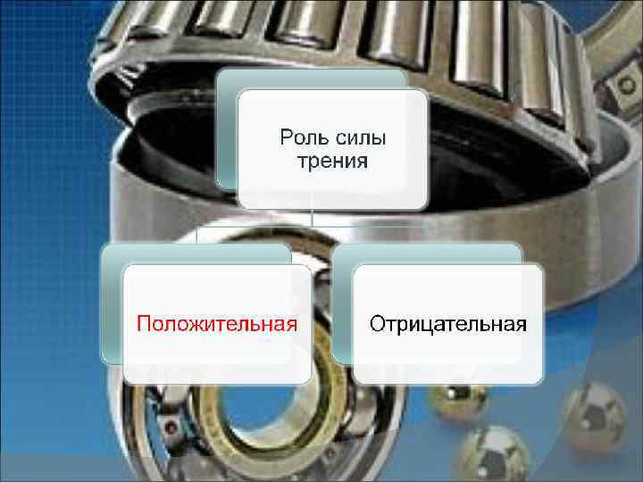 Подшипники помогают уменьшит силу трения в десятки раз за счет замены трения качения трением скольжения Шариковый подшипник Роликовый подшипник Вкладыш – деталь подшипника, непосредственно соприкасающаяся с валом