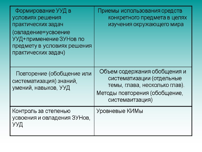 Формулировки и решения на уроке дидактических задач, направленных на формирование УУД. Усвоение = понимание + запоминание правильное воспроизведение. Овладение = усвоение + применение знаний и УУД в условиях решения учебных задач.
