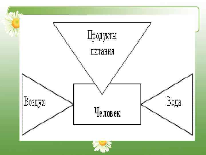Цепь загрязнения Загря зняю веще щие ства в воз попадают дух, в о почву ду, ия тен ые ас тн Р во Жи Организ м челове Продукт ы питан ка ия