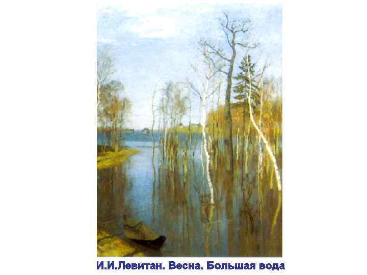 Сделайте описание более конкретным, введя в него обособленные определения и обстоятельства. Пробуждение природы «Весна. Большая вода» . вода изображено в пейзаже Растаял снег, и весенняя __________________ затопила опушку рощицы. Тонкие березки __________ У берега выстроились в ряд. стоит __________ лодка. Река разлилась. Вдалеке виднеются избы.