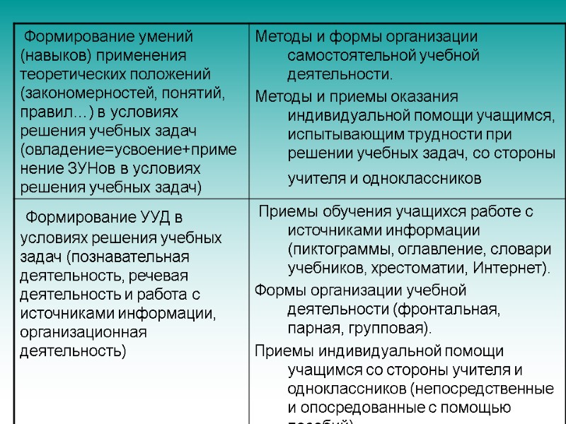 Формулировки и решения на уроке дидактических задач, направленных на формирование УУД. Усвоение = понимание + запоминание правильное воспроизведение. Овладение = усвоение + применение знаний и УУД в условиях решения учебных задач.