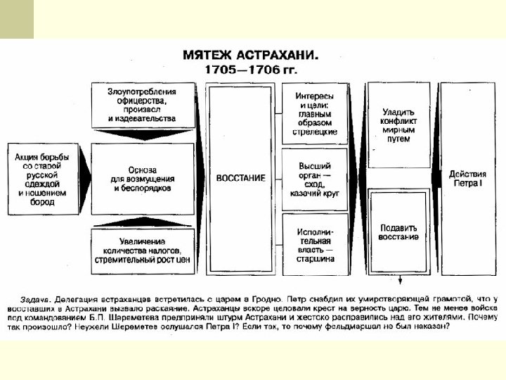 Народные волнения 1705 г. – Астраханское восстание 1705 – 1711 – башкирское восстание 1707 – 1708 гг. – восстание под руководством Кондратия Булавина