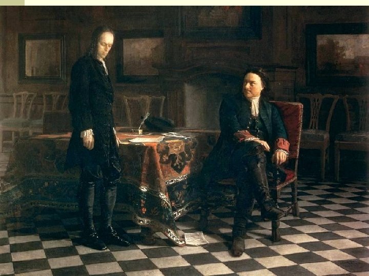 Порядок работы коллегий n Коллегию возглавлял президент n Решения принимались большинством голосов членов коллегии n При равенстве голосов голос президента коллегии считался за два голоса Первые президенты «первейших» коллегий: Иностранная – Гавриил Иванович Головкин Военная – Александр Данилович Меншиков Адмиралтейская – Федор Матвеевич Апраксин