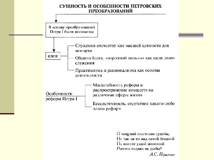 Особенности петровских реформ n. Не было четкого плана n. Реформы проводились под давлением военных нужд n. Не было цели кардинально перестроить Россию на европейский лад