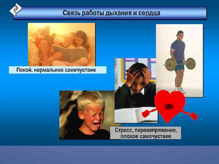 В ситуациях стресса и перенапряжения дыхание и сердцебиение учащаются