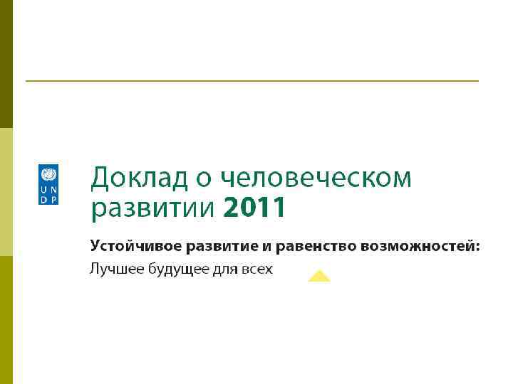 Индикаторы, используемые для измер человеческого развития p Ожидаемая продолжительность предстоящей жизни при рождении p Грамотность взрослого населения p Полнота охвата обучением – с 1995 г. p Реальный объем ВВП на душу населения в долларах США по паритету покупательной способности (ППС)