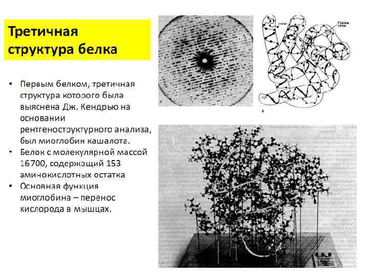 Современное изучение структуры белка • В XXI веке исследование белков перешло на качественно новый уровень, когда исследуются не только индивидуальные белки, но и одновременное изменение количества и посттрансляционные модификации большого числа белков отдельных клеток, тканей или организмов. Эта область биохимии называется протеомикой. • С помощью методов биоинформатики стало возможно не только обработать данные рентгенно-структурного анализа, но и предсказать структуру белка, основываясь на его аминокислотной последовательности. • В настоящее время электронная микроскопия больших белковых комплексов и предсказание малых белков и доменов больших белков с помощью компьютерных программ по точности приближаются к разрешению структур на атомном уровне.