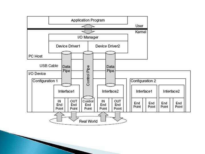 Dataöverföring q NRZI-kodning q Specifika med bit stuffing överföringstyper Interrupt tranfers –snabb överföring av avbrottsdata t. ex. mus, gamepad Isochronous tranfers – realtidsdata utan feldetektering t. ex. läsning från audio-CD, överföring av röst