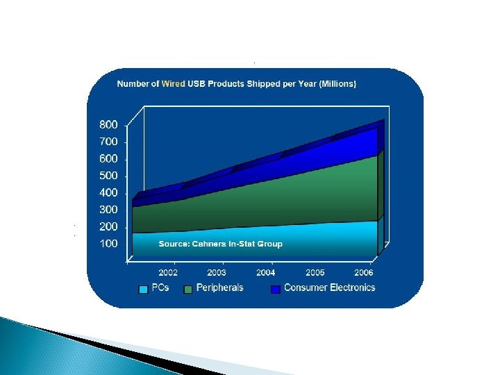 q ”With USB 3. 0, we are creating an even better experience for customers when connecting their printers, digital cameras or other peripheral devices to their PCs. ” Certified Wireless USB (2005) -Snabb trådlös kommunikation på korta avstånd -480 Mbps: 0 -3 m 110 Mbps: 3 -10 m -Högfrekvent, upp till 10, 6 GHz -Konkurrerar med Bluetooth