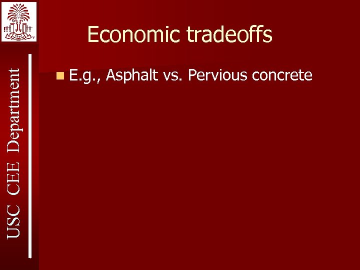 USC CEE Department Economic tradeoffs n E. g. , Asphalt vs. Pervious concrete