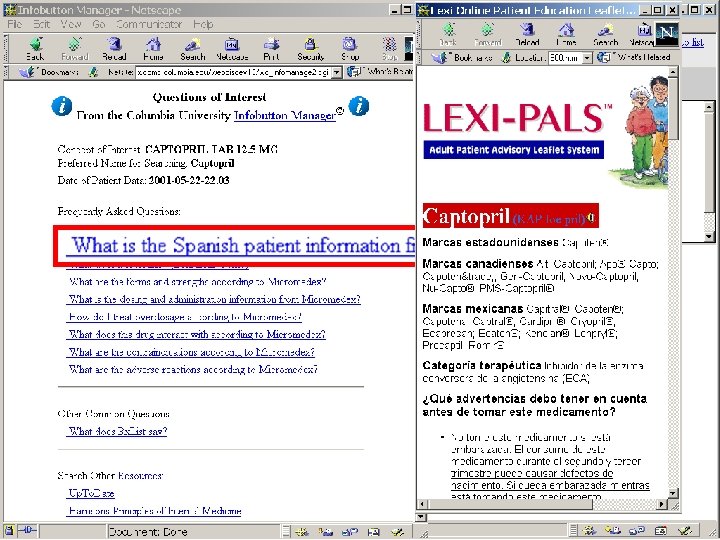 Conclusions 1. Context-specific access to health knowledge resources has been successfully accomplished 2. Impact on patient care decisions has been positive 3. Need to improve user interface for navigation 4. Increased resource use should result in clinicians making better informed patient care decisions