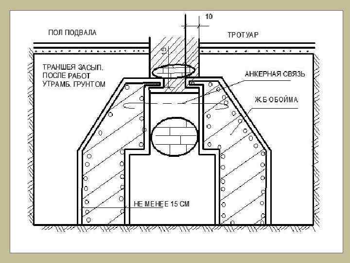 - производится очистка фундаментов (поверхности) от пыли раствора и грязи металлическими щетками, струей сжатого воздуха - усиливается инвентарная опалубка из деревянных щитов на расстоянии 15 см. от выступающей части кладки - для железобетонной обоймы устанавливается арматура и анкерные связи (по проекту). Отверстия необходимые для анкерных связей сверлятся также, как и в предыдущем случае. - бетонирование производится с тщательным уплотнением при помощи игловибратора - после отвердения бетона через 6 – 7 дней инвентарная опалубка снимается и переносится на другой участок работ. Производится гидролизация отремонтированной части фундамента.