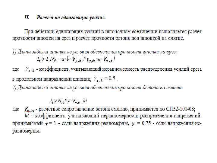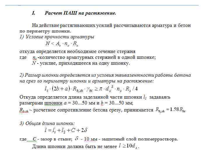 Правила конструирования • ПАШ выполняется в конструкциях из бетонов класса В 10 и выше • ПАШС выполняется в конструкциях из бетонов низкого класса (ниже В 10); • Размеры сечения шпонок принимаются a = b = 3… 5 см; • Арматура принимается периодического профиля, диаметр не менее 10 мм, класса А 300 или А 400; • Длина шпонки в одну сторону принимается по расчету, но не менее 10 диаметров арматуры.
