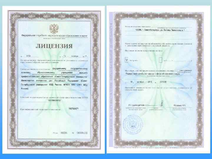Приемная комиссия • Устав университета утвержден приказом МВД России № 599 от 29 июля 2009 года • Лицензия на осуществление образовательной деятельности – № 0394 от 16 октября 2012, предоставлена на основании распоряжения Федеральной службой по надзору в сфере образования и науки от 16 октября 2012 года № 3874 -06 на срок – бессрочно • Свидетельство о государственной аккредитации – серия ВВ № 001245 , выдано Федеральной службой по надзору в сфере образования и науки 08 декабря 2011 года, регистрационный № 1232, срок действия по 13 декабря 2015 года