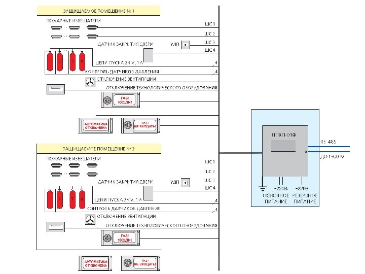 12. 4. 4 Перед входами в помещения должна предусматриваться сигнализация по ГОСТ 12. 4. 009 и ГОСТ 12. 3. 046. Световые оповещатели должны обеспечивать контрастное восприятие при любом освещении и быть невоспринимаемыми в выключенном состоянии. 12. 4. 5 В помещении пожарного поста должна быть предусмотрена сигнализация: а) световая и звуковая сигнализация: - о неисправности установки (обрыв и короткое замыкание линий); - падении давления в побудительных трубопроводах и пусковых баллонах АУГП; - исчезновении напряжения на основном и резервном вводах (звуковой сигнал общий); - б) световая сигнализация об отключении автоматического пуска (с расшифровкой по помещениям).