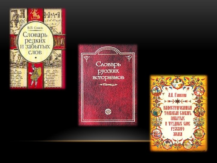 СЛОВАРЬ УСТАРЕВШИХ СЛОВ. • В словарь включены историзмы и архаизмы, представлены некоторые устаревшие фразеологические обороты, формы вежливого обращения, названия должностей. В словаре раскрываются значения этих слов, дается их грамматическая и стилистическая характеристика, на примерах ─ иллюстрациях показано, как они