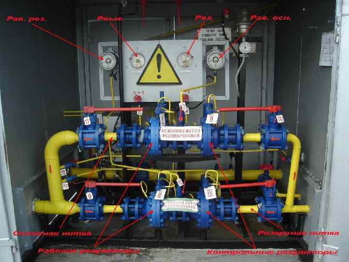 Регуляторы II; IV – контрольные настраиваются, на 1, 08 от величины договорного выходного давления Регулятор I – рабочий регулятор основной нитки редуцирования, настраивается на величину выходного давления Регулятор III – рабочий регулятор резервной нитки редуцирования, настраивается на 0, 95 от величины выходного давления