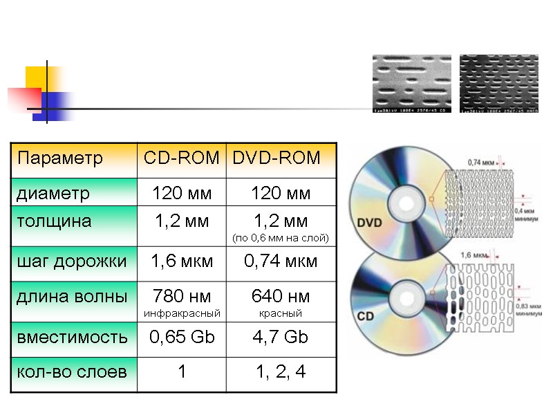 Дисковод DVD-ROM DVD (Digital Versatile Disk) цифровой многофункциональный диск (видео фильмы, игры, энциклопедии…) Стандарты DVD-5 – 1 сторона, 1 слой;. 4,7 Gb DVD-9 – 1 сторона, 2 слоя; 8,5 Gb DVD-10 – 2 стороны, 1 слой; 9,4 Gb DVD-18 - 2 стороны, 2 слоя; 17,0 Gb 4,7 Gb =133 мин. видео в формате MPEG-4 со звуком Dolby Digital на 8 языках и субтитрами на 32 языках.
