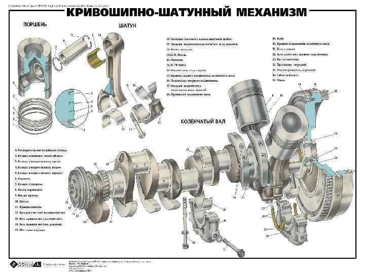 Коленчатый вал 2 изготовлен из стали. Он имеет четыре коренные и три шатунные шейки. Все шейки вала подвергаются поверхностной закалке токами высокой частоты. Шатунные шейки расположены по отношению друг к другу под углом 120°. Для уменьшения массы вала шатунные шейки выпол нены полыми. Внутренние полости вала используются для дополнительной центробежной очистки масла; с боков они закрыты заглушками. К фланцу задней части коленчатого вала болтами крепится маховик 21, на цилиндрической поверхности которого нанесен ряд рисок с цифрами (по ним устанавливается необходимый угол начала подачи топлива). Коренные и шатунные подшипники коленчатого вала состоят из двух стальных тонкостенных вкладышей, покрытых слоем свинцовистой бронзы. Для защиты от коррозии поверхности вкладышей покрыты тонким слоем специального сплава свинца. Верхние и нижние вкладыши коренных подшипников не взаимозаменяемы, а шатунных — взаимозаменяемы. Верхние вкладыши коренных подшипников отличаются от нижних наличием кольцевой канавки в слое свинцовистой бронзы с отверстием