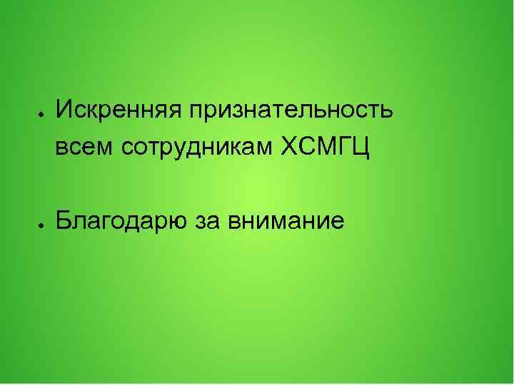 ● ● Искренняя признательность всем сотрудникам ХСМГЦ Благодарю за внимание