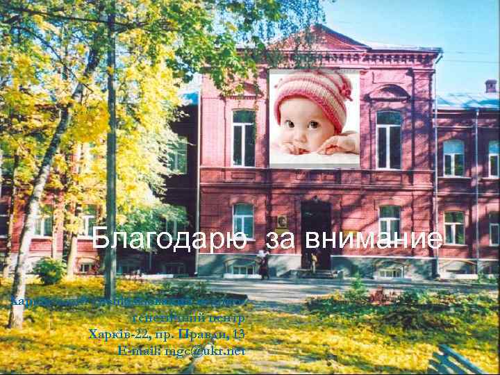 Благодарю за внимание Харківський спеціалізований медикогенетичний центр Харків-22, пр. Правди, 13 Е-mail: mgc@ukr. net
