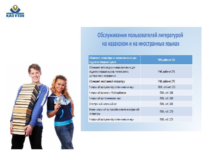 Уважаемые первокурсники! Приглашаем вас познакомиться с Научной библиотекой Каз. НИТУ Электронный адрес библиотеки: e-lib. kazntu. kz