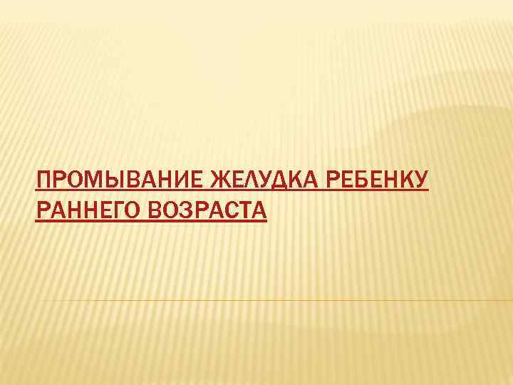 ПРОМЫВАНИЕ ЖЕЛУДКА РЕБЕНКУ РАННЕГО ВОЗРАСТА