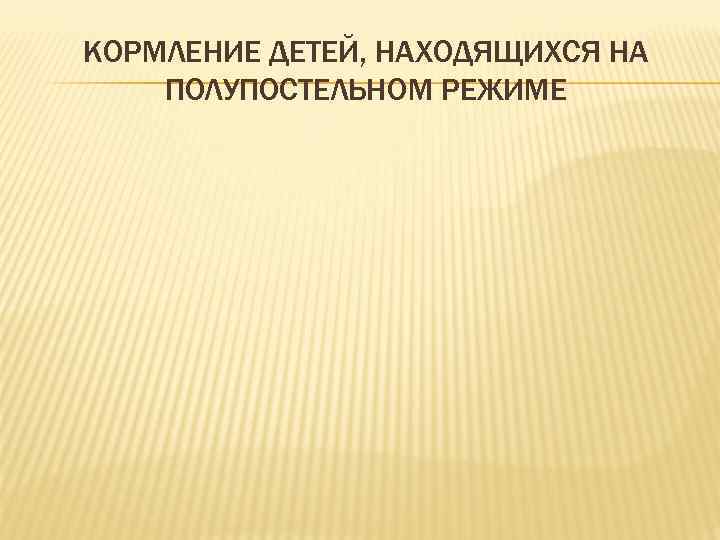 КОРМЛЕНИЕ ДЕТЕЙ, НАХОДЯЩИХСЯ НА ПОЛУПОСТЕЛЬНОМ РЕЖИМЕ