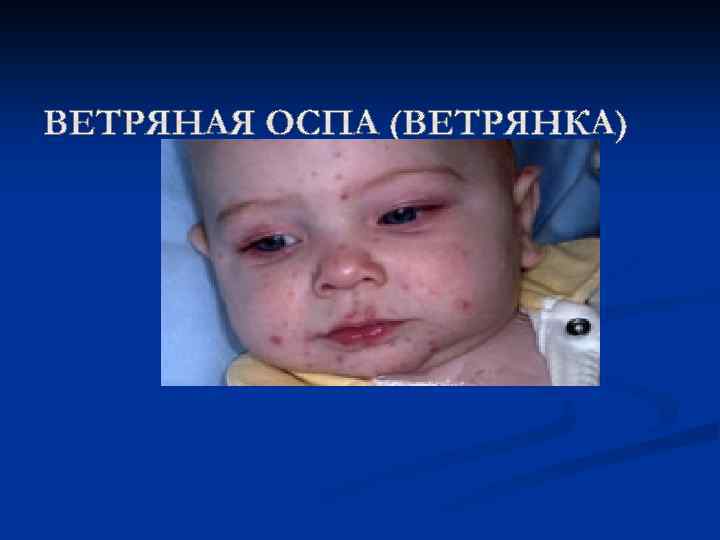 Ветрянка (ветряная оспа) — высокозаразное острое инфекционное заболевание, протекающее с характерной пузырьковой сыпью. Чаще болеют дети, посещающие детский сад или школу — места с большим скоплением людей. Заболевание вызывается одним из вирусов герпеса. Ветряная оспа — очень заразное заболевание. Вирус передается от больного человека к здоровому воздушнокапельным путем (при разговоре, пребывании в одном небольшом помещении). Заражение также может произойти от больного опоясывающим лишаем (вызывается той же разновидностью вируса герпеса). Больной ветрянкой становится заразным за два дня до появления высыпаний, и остается заразным в течение первых 5 -7 дней после появления сыпи.