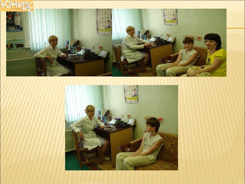 СТРУКТУРА ЦЕНТРА «ЮНИКС» : ЦДП «Юникс» расположен на 2 -ом этаже поликлиники, имеется отдельный вход с улицы. Кабинеты: -Регистратура № 233; -Кабинет формирования здорового образа жизни и профилактики рискованного поведения (валеолог, нарколог) № 231 -Подростковый кабинет (прием мальчиков) № 232 -Психолог № 230 -Уролог, дерматовенеролог № 229 -Консультативный кабинет (заведующая центром, врачпедиатр) № 234 -Подростковый гинеколог № 228 -Информационно-методический № 235