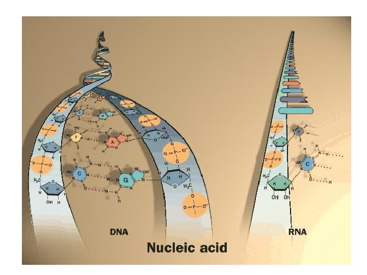 DNA-RNA arasında temel farklar DNA RNA Şeker deoksiriboz Baz çifti Timin-Adenin Sitozin-Guanin Urasil-Adenin Sitozin-Guanin Yapısı Çift sarmal heliks Tek Sarmal Düzensiz Dayanıklılık Stabil DNAse ile yıkılır Baz hidrolizine açık RNAse ile yıkılır Fonksyonu Genetik bilgiyi nukleusta Genetik bilgiyi sitoplazmaya saklar taşır