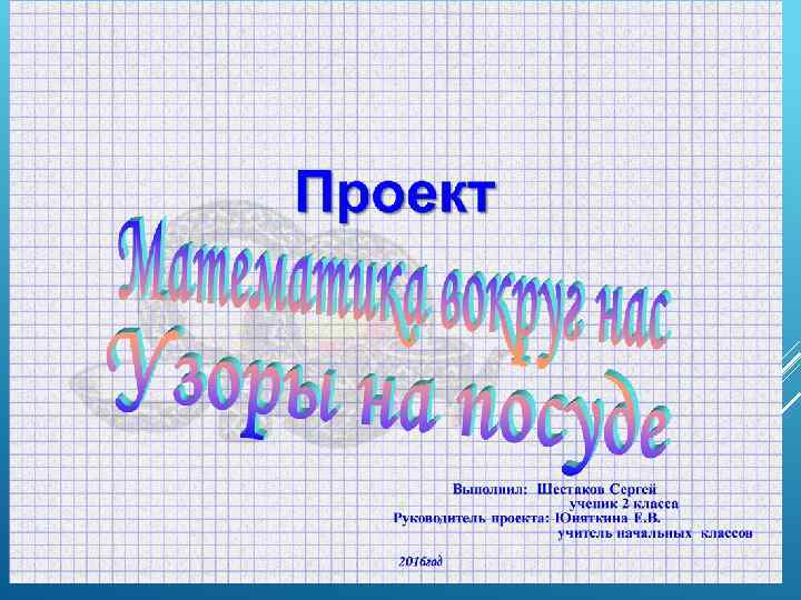 Узоры и орнаменты применяются в различных областях, имеют разные способы создания и некоторые из них имеют определенную предпочтительность в дизайне различных вещей и предметов. Орнаменты являются одним из элементов национальной культуры всех народов мира. С их помощью можно изучать обычаи и традиции той или иной страны. Узоры и орнаменты используются в народном творчестве, драгоценных окладах, тесьме и др. Я создал альбом «Орнаменты и узоры на посуде» , в котором размещены фотографии наиболее понравившихся мне узоров, которые есть у нас в доме Вывод: Геометрические узоры повсюду, это достаточно привычное явление, просто мы на это редко обращаем внимание за повседневными делами и просто так. Математика вокруг нас всегда и везде.