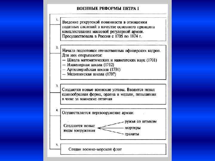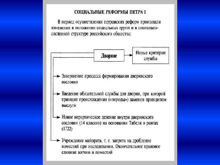Реформы в области культуры Пётр I oбращал внимание на приобщение дворянства к образованию и светской европеизированной культуре. Стали появляться светские учебные заведения, основана первая русская газета, появляются переводы многих книг на русский. Успех по службе Пётр поставил для дворян в зависимость от образования.