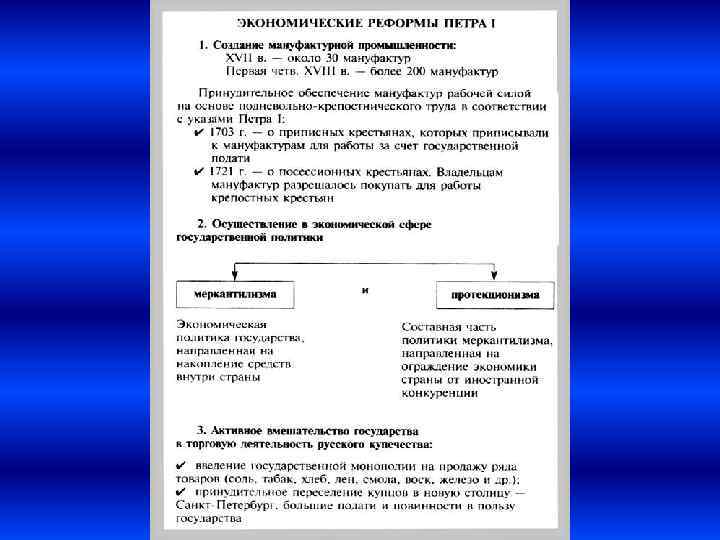 Реформы в области быта Старая привычная долгополая одежда с длинными рукавами запрещалась и заменялась новой. Камзолы, галстуки и жабо, широкополые шляпы, чулки, башмаки, парики быстро вытесняли в городах старую русскую одежду. Быстрее всего распространилась западноевропейская верхняя одежда и платье среди женщин. Новая одежда при Петре I