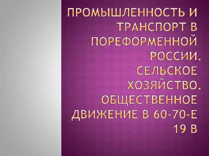 Рос экспорт зерна, Россия по экспорту зерна занимала 1 место. После отмены КП помещикам пришлось перестраивать свое хозяйство на рыночных началах. Им нужно было перейти от барщинной системы к капиталистической. Сделанные во время реформы «отрезки» заставляли крестьян арендовать землю у помещика Но кроме своего труда взамен они ничего предложить не могли, так возникла отработочная системы хозяйства. Сложилась полукрепостническая форма эксплуатации.