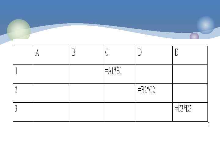 Относительные ссылки При перемещении или копировании формулы из активной ячейки относительные ссылки автоматически изменяются в зависимости от положения ячейки, в которую скопирована формула. При смещении положения ячейки на одну строку в формуле изменяются на единицу номера строк , а при смещении на один столбец на одну букву смещаются имена столбцов.