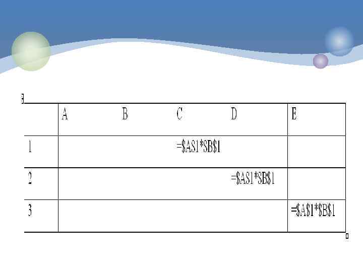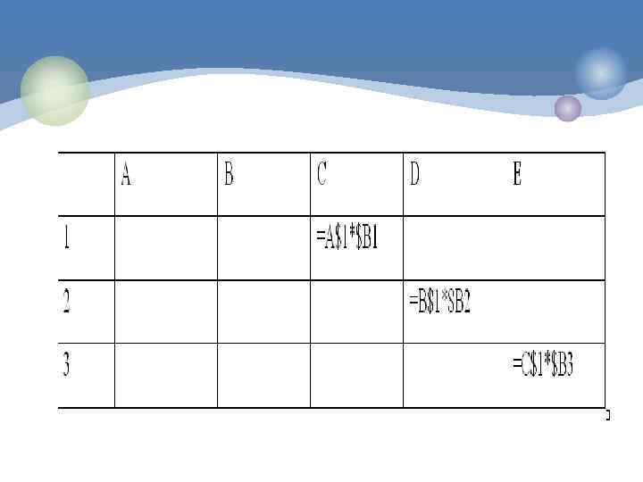 Смешанные ссылки. В формуле можно использовать смешанные ссылки, в которых координата столбца относительная, а строки – абсолютная ( пример A$1), или, наоборот координат столбца абсолютная, а строки – относительная (пример $B 1).