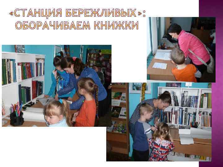 И вот снова остановка, станция «Бережливых» . Здесь живут ребята, у которых с детства воспитана привычка бережного отношения ко всему. Жители этой станции всегда помнят, например, что нужно беречь вещи и имущество. Мы провели конкурс «Самая аккуратная книжка» . Нужно было суметь красиво обернуть книгу.