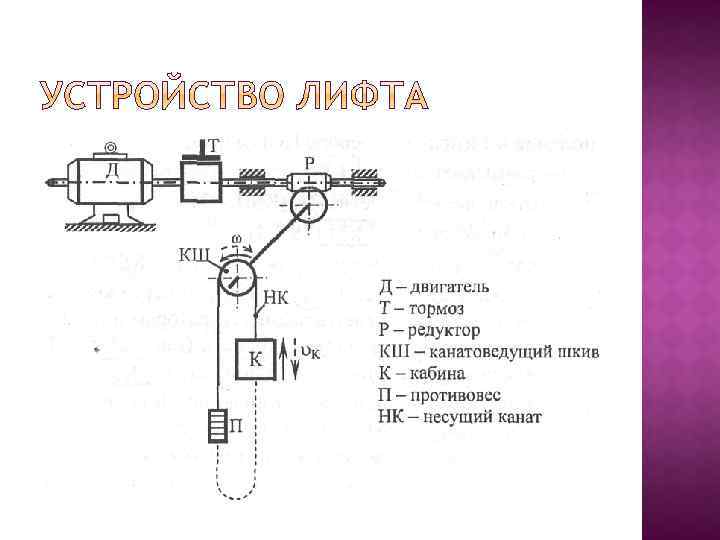 v Предназначен для перемещения людей и грузов в вертикальном направлении по строго определенному пути.