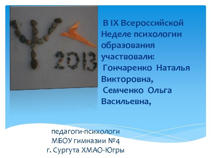 В IX Всероссийской Неделе психологии образования участвовали: Гончаренко Наталья Викторовна, Семченко Ольга Васильевна, педагоги-психологи МБОУ гимназии № 4 г. Сургута ХМАО-Югры